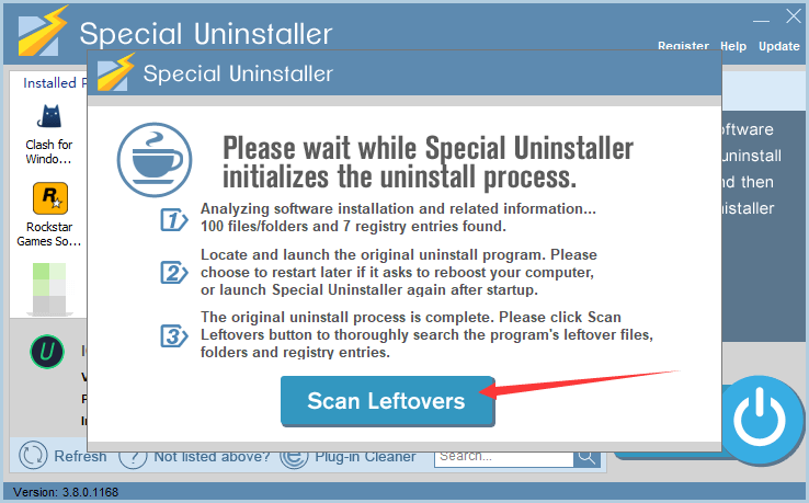 4. Once it finishes scanning all the related files, click Scan Leftovers