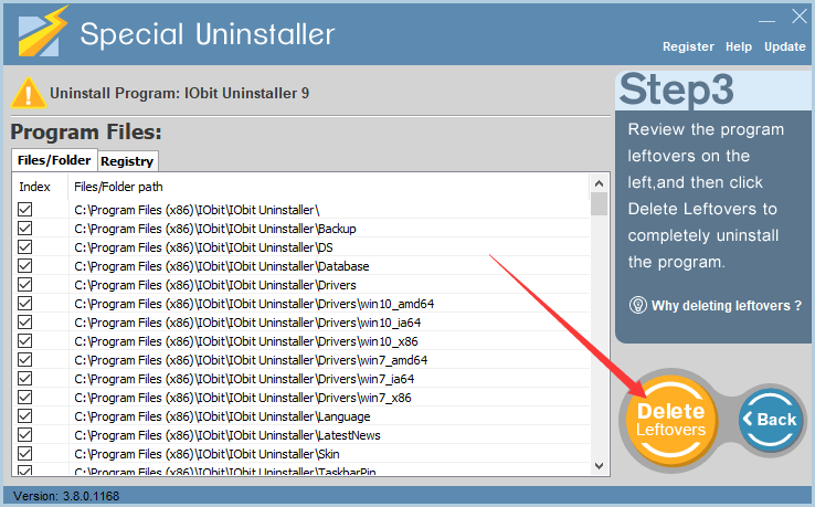5. Keep all the files and vestiges checked, and click Delete Leftovers